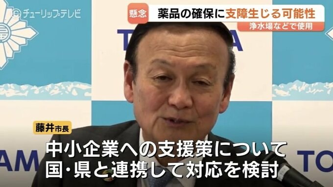 富山市の藤井裕久市長は、原油の調達難が長期化した場合、浄水場などで使用する薬品の確保に支障が生じる可能性があると懸念を示しました。