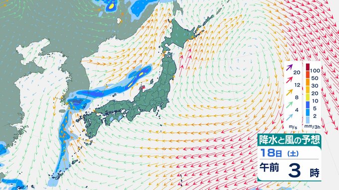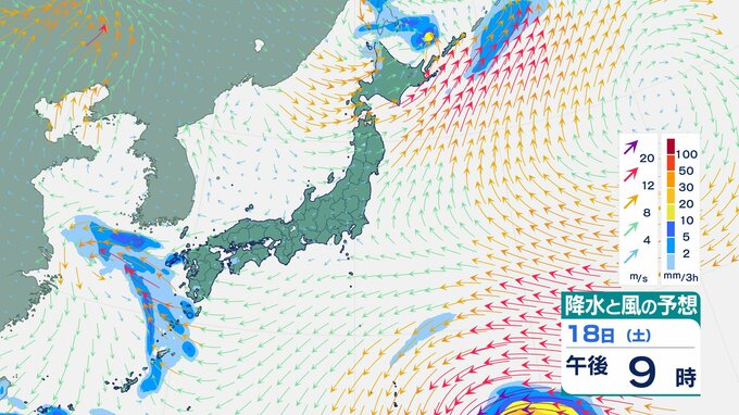 ニュースクリップ 【台風情報】台風4号(シンラコウ)強い勢力で小笠原諸島に接近見込み…19日(日)に南鳥島近海を通過へ 温帯低気圧になっても最大風速30m/sのおそれ【雨と風のシミュレーション】 2026年4月17日(金) 17:30 国内 天気 18日(土)の雨と風のシミュレーション