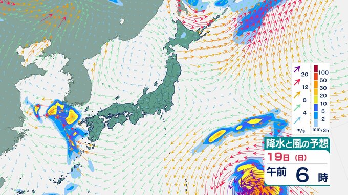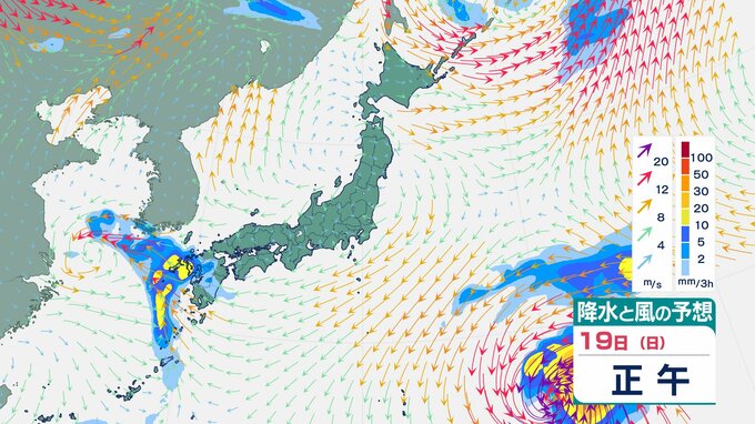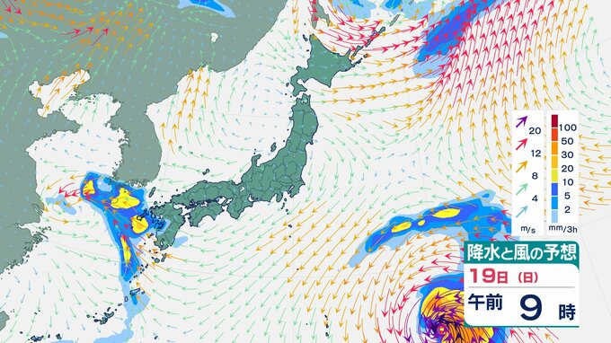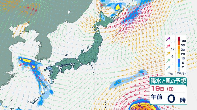 ニュースクリップ 【台風情報】台風4号(シンラコウ)強い勢力で小笠原諸島に接近見込み…19日(日)に南鳥島近海を通過へ 温帯低気圧になっても最大風速30m/sのおそれ【雨と風のシミュレーション】 2026年4月17日(金) 17:30 国内 天気 19日(日)の雨と風のシミュレーション