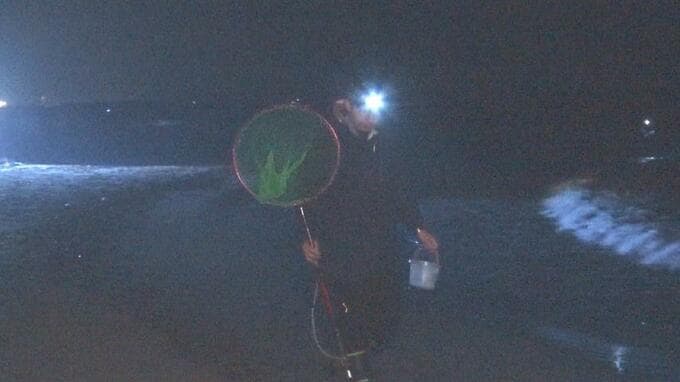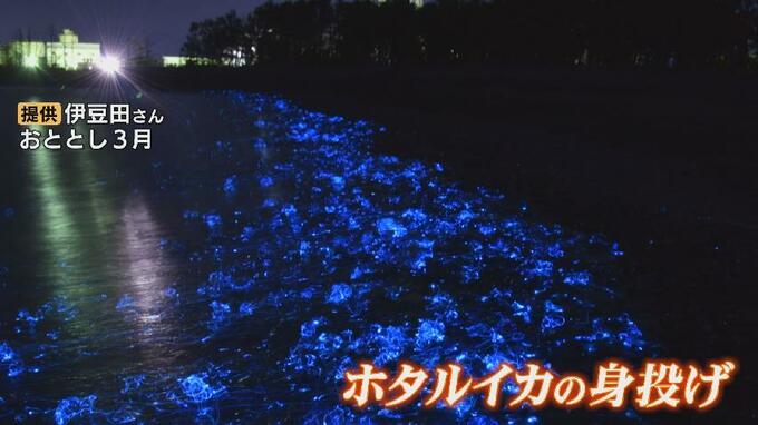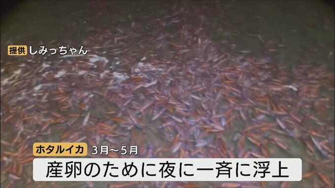 訪れた人たちのお目当ては、富山湾の春の風物詩、「ホタルイカの身投げ」です。例年3月から5月、ホタルイカは、産卵のため夜に一斉に浮上します。