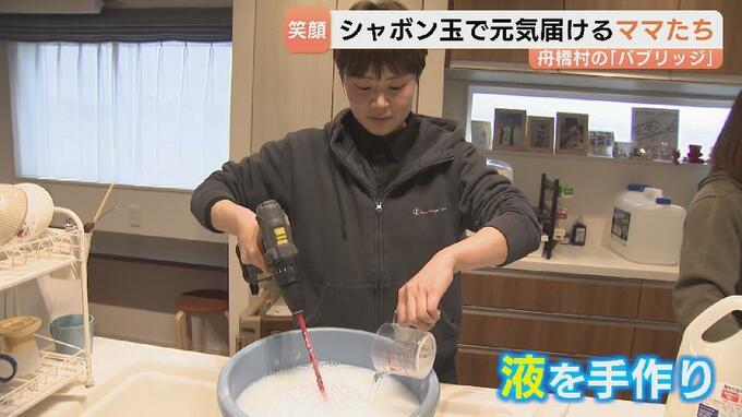 「市販のだと大きいシャボン玉とか作れないみたいで。これも師匠に教わった秘伝の液」