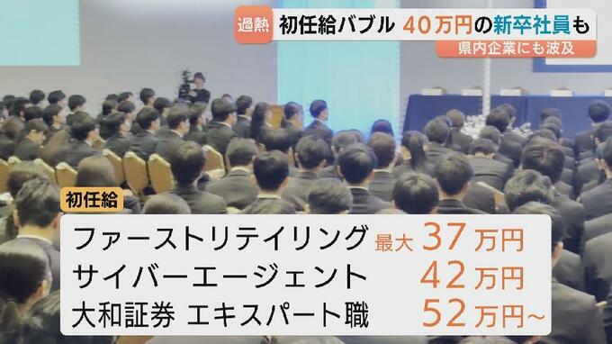 こうした初任給を引き上げる動きは「初任給バブル」と言われ、ユニクロを展開するファーストリテイリングは最大37万円、サイバーエージェントは42万円などとなっています。
