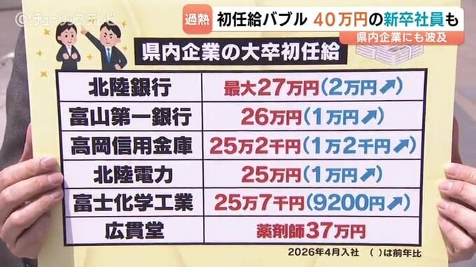 北陸銀行は27万円 ”初任給バブル”は県内も