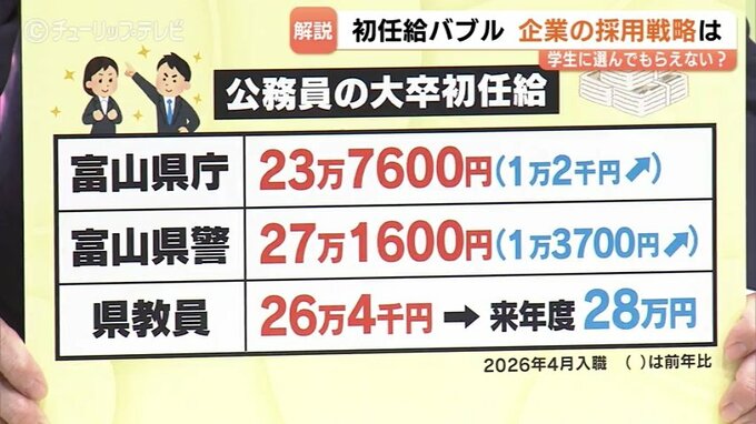 ▼教員…26万4000円ですが、来年4月採用の教員は28万円と1万6000円アップが決まっています。