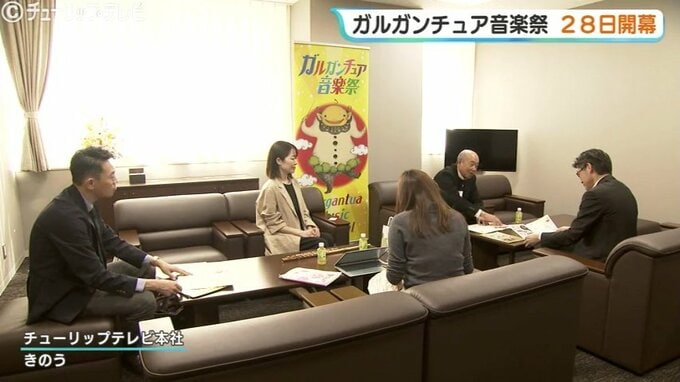 富山、石川、福井の各会場に世界のトップアーティストが集う「ガルガンチュア音楽祭」が開催されるのを前に、実行委員会のメンバーがチューリップテレビを訪れました。