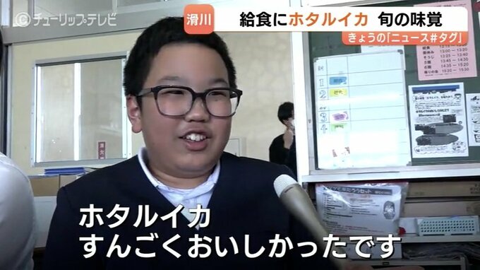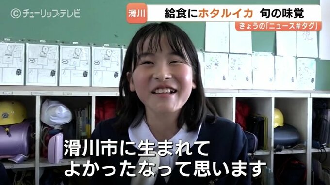 「ホタルイカは(家では)あんまり食べないけど、給食のホタルイカボンボンは大好きです。滑川市に生まれてよかったなって思います」