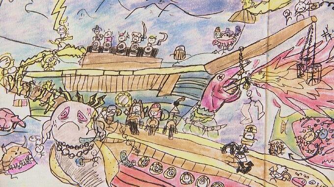 「えっと、これは自分の想像の世界って言ったらいいかな。なんか現実にない生き物とか描いて、みました」