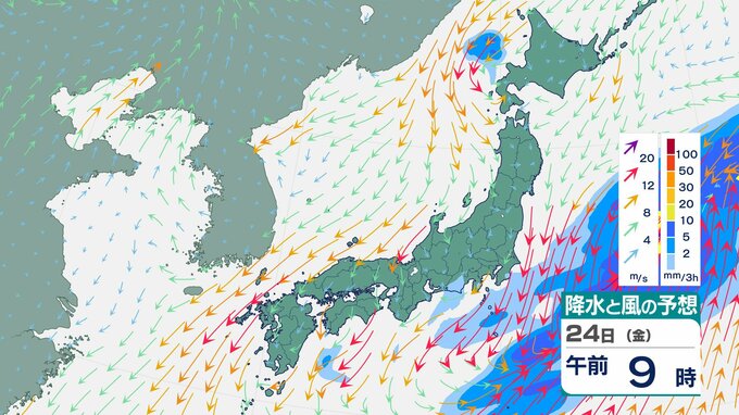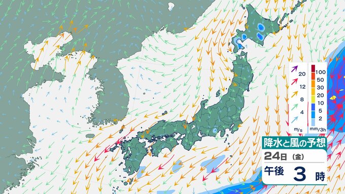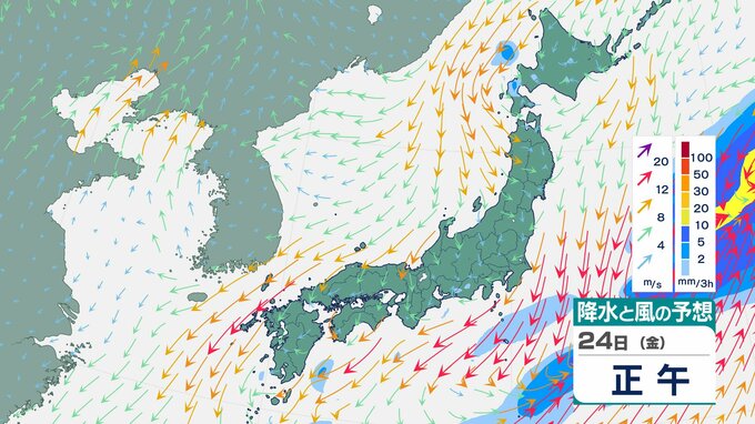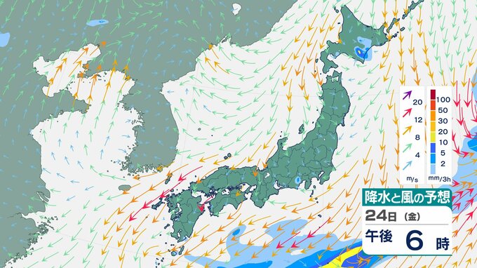 ニュースクリップ 多いところでは翌朝までに80mm降雨か “警報級”大雨のおそれも 土砂災害や低地の浸水などに注意 沖縄地方【雨と風のシミュレーション】 2026年4月23日(木) 11:56 国内 天気 24日(金)の雨と風のシミュレーション