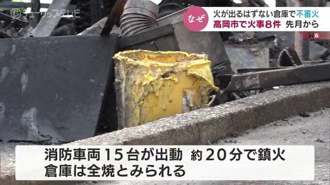 5日午後、富山県高岡市で倉庫から火が出る火事がありました。警察は放火の可能性もあるとみて調べています。高岡市では12月から火事が8件も相次いでいて、消防が注意を呼びかけています。