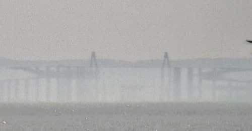 これが午前11時20分ごろ、魚津市の富山湾から射水市の新湊大橋をとらえた写真です。橋が上下さかさまに反転しているのがはっきり確認できます。