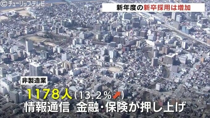 一方、非製造業は「情報通信」や「金融・保険」が採用実績を押し上げ、13・2%増の1178人となっています。