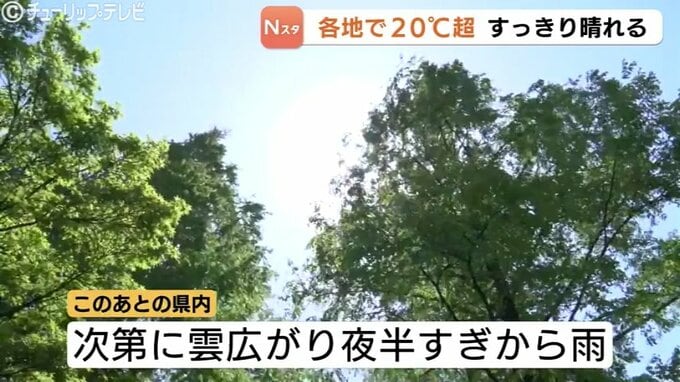 このあとの県内は気圧の谷や低気圧の影響で雲が広がり、夜半過ぎからは雨が降り出す見込みです。