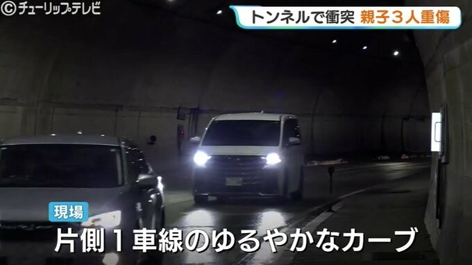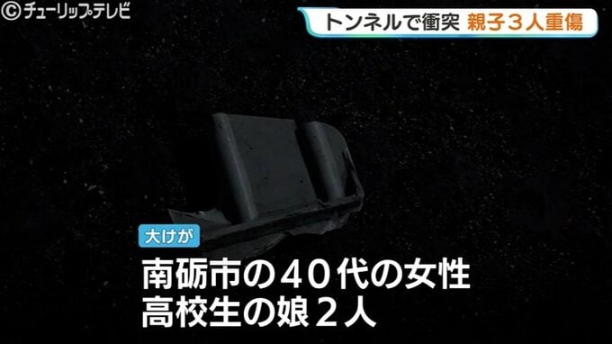 26日、富山県南砺市のトンネル内で乗用車同士が衝突する事故があり、運転していた女性と高校生の娘2人の親子3人が重傷を負いました。