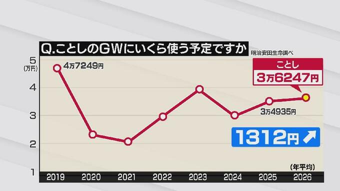 明治安田生命の調査によりますと、ことしのゴールデンウィークの予算は平均で3万6247円となりました。