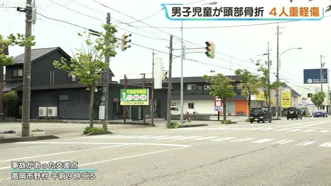 28日夜、富山県高岡市の県道交差点で車同士が衝突する事故があり、男子小学生1人が頭の骨を折るなど4人が重軽傷を負いました。