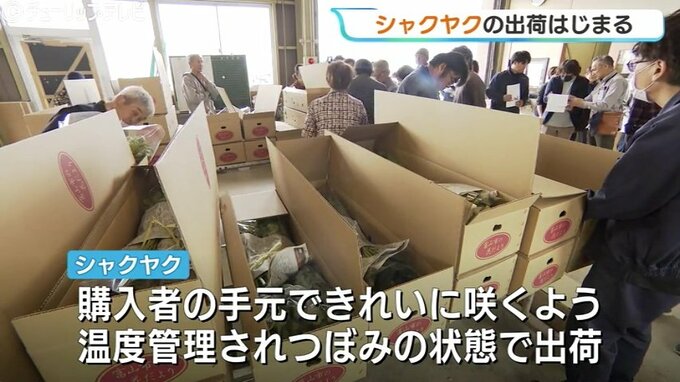 母の日のプレゼントに用いられる富山県産のシャクヤクの出荷がはじまっています。今年は昨年並みの14万本の出荷を見込んでいます。