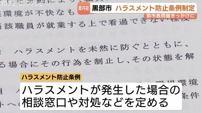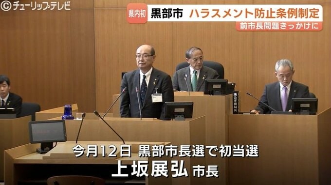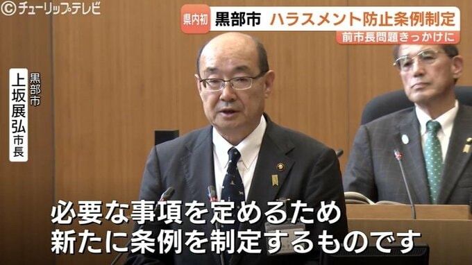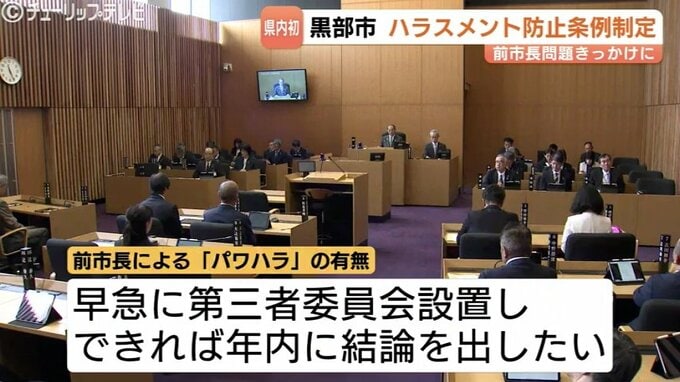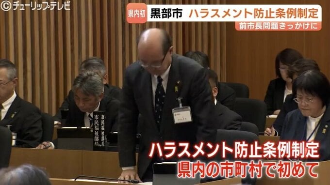 管理職の一部が前の市長によるパワハラを訴えていた黒部市で、ハラスメント防止条例が制定されました。県内の自治体でハラスメント防止条例が制定されるのは初めてです。