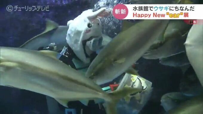 魚津水族館ではほかにもウサギの耳をつけたかわいいダイバーによるエサやりも見学することができます。このユニークな展示は1月22日まで開催しています。