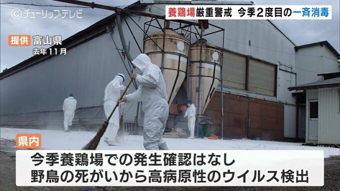 富山県内ではこれまで養鶏場での発生は確認されていないものの、去年11月に富山市と射水市で野鳥の死骸から高病原性のウイルスが検出されています。