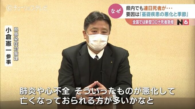 「基礎疾患を持っている方はどうしてもこの冬の時期に、12月1月っていうのは、もともとそういったことで亡くなることが多かったですので、コロナ感染が拡大しているところに、そこが重なって今死亡者が多いように見えている部分もある」