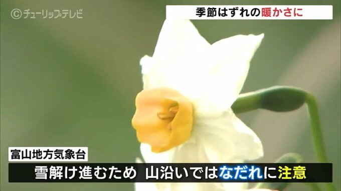 15日朝にかけても気温は高くなる見込みで、富山地方気象台は、雪解けが進むため山沿いではなだれに注意するよう呼びかけています。