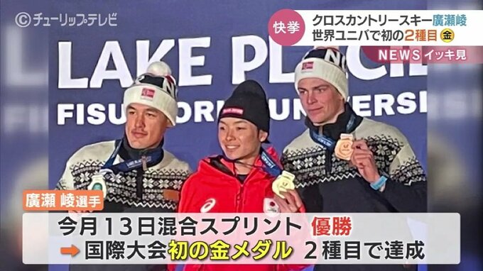アメリカで行われているクロスカントリースキーの大学生世代の世界大会『世界ユニバーシティー冬季大会』に、富山市出身の廣瀬崚(ひろせ・りょう)が出場し、10キロクラシカルで金メダルに輝きました。
