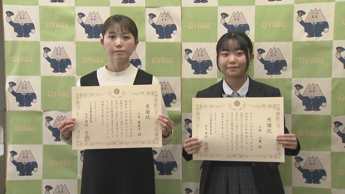 山本さん親子は22日、小矢部警察署から感謝状を受け取りました。