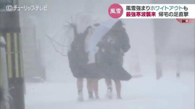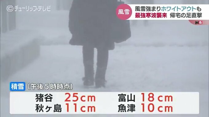 強い風と雪が吹きつけ、富山県内は視界も悪い「ホワイトアウト」状態に・・・。