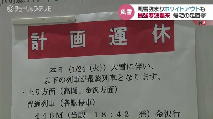 雪の影響で、あいの風とやま鉄道は、午後7時以降の運転取り止めを決めました。