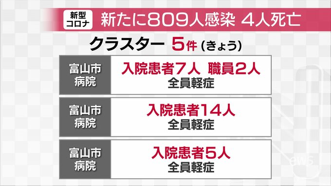 クラスターは5件で富山市の3つの病院で入院患者と職員合わせて28人の感染が確認されていて全員軽症です。