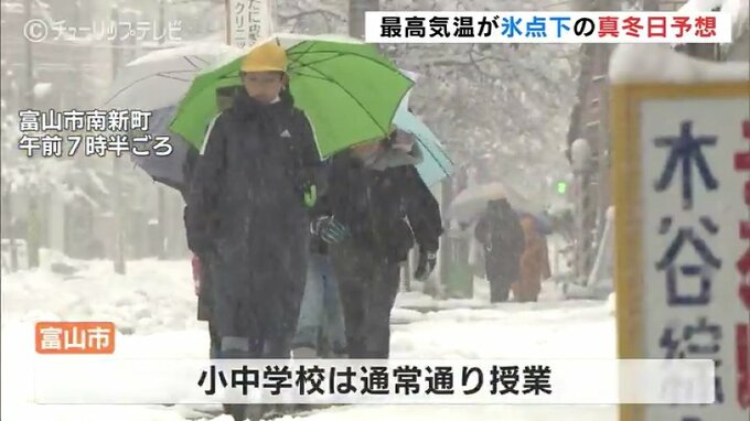 そうしたなか、富山市の小中学校では通常通り授業が行われ、子どもたちは足元に気をつけながら慎重に登校していました。