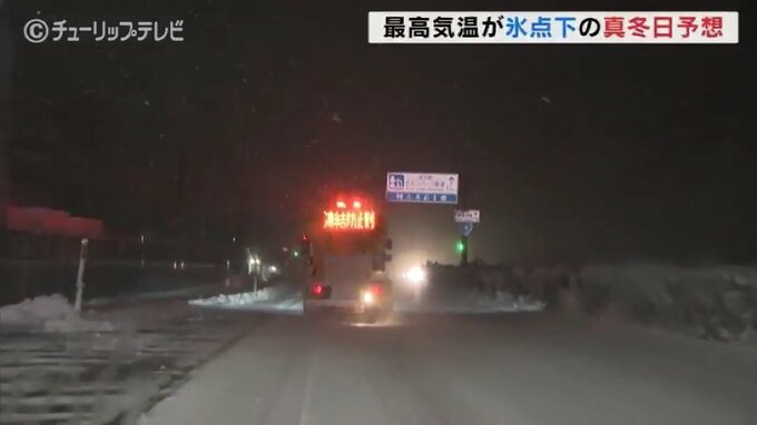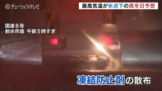 県内は雪とともに未明からぐっと冷え込み、国道8号では夜を徹して凍結防止剤の散布が続けられていました。