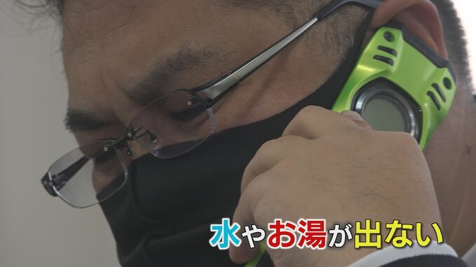住民:「気が付いたのはきょうの朝で冷え込むと聞いてたので、夕べはボイラーのスイッチをずっと入れたままにして、朝はお湯を出すと水がほとんど出ない感じ」「辛いです。洗物とか…、きょうの夜までお湯が出ないとお風呂にも入れない」