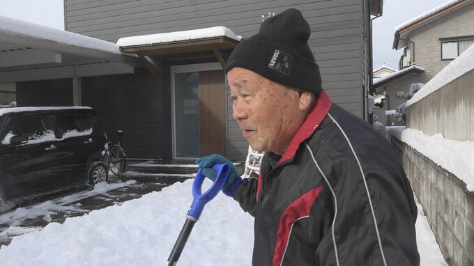 除雪をしていた男性:「地面に(雪が)張り付いてるんですよ。カンカンに凍ってしまってるもん。大変。割らんなんからね」「雪はもうほしくないね。だって大変だよ」