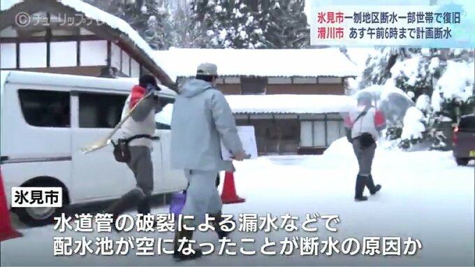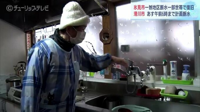寒波の影響で27日から断水が続いている富山県氷見市の一刎(ひとはね)地区では17世帯の一部で断水となっています。