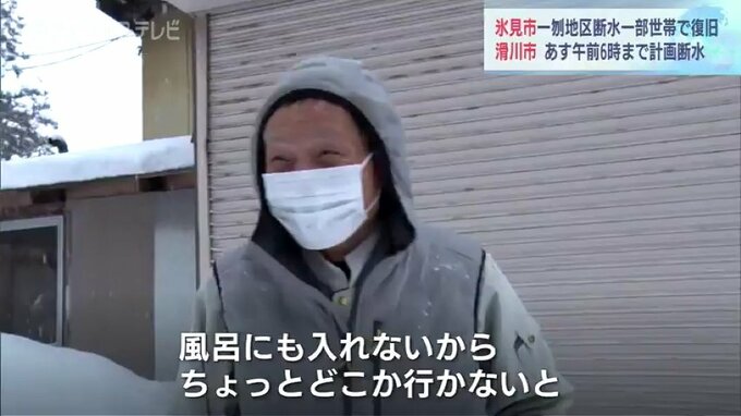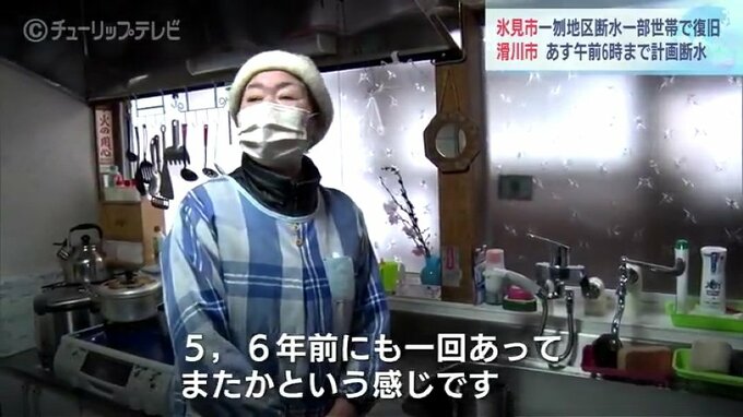 女性:「やっぱり凍結して出ないかと思って。洗濯機でも水を出そうとしたのですが出なくて。5、6年前にも一回あって、またかという感じです」