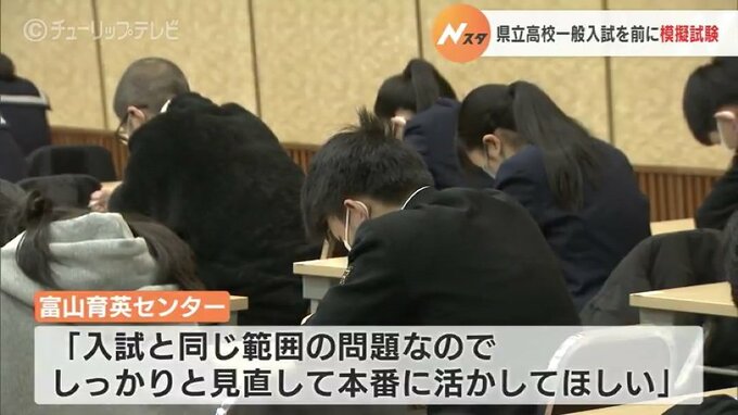 富山育英センターでは、「入試と同じ範囲の問題なので、しっかりと見直して本番に活かしてほしい」と話していました。