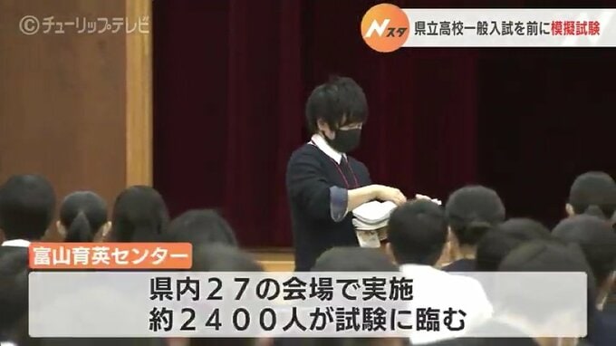 この模試は、富山育英センターが県内27の会場で実施、県内の受験生の3分の1にあたるおよそ2400人が、試験に臨みました。