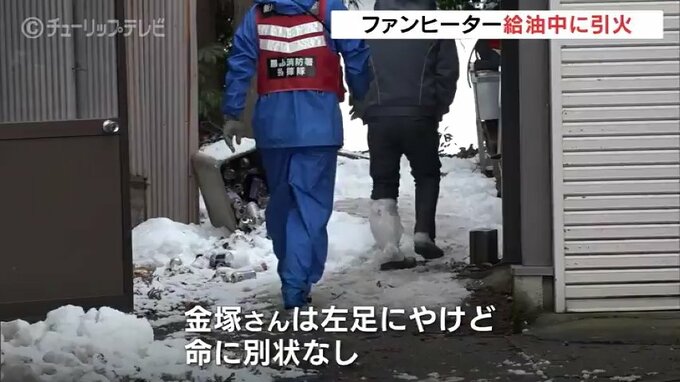 警察によりますと3日午前0時6分ごろ、富山県黒部市の農業、金塚政憲(かなづか・まさのり)さん(56)が、台所で石油ファンヒーターに給油していたところ、引火して燃え広がり、自身で119番通報しました。