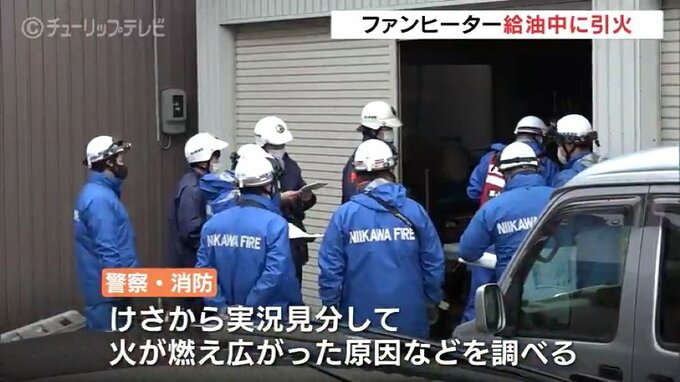 3日未明、石油ファンヒーターの給油中に火が燃え広がる火事が富山県黒部市であり、56歳の男性がやけどを負いました。