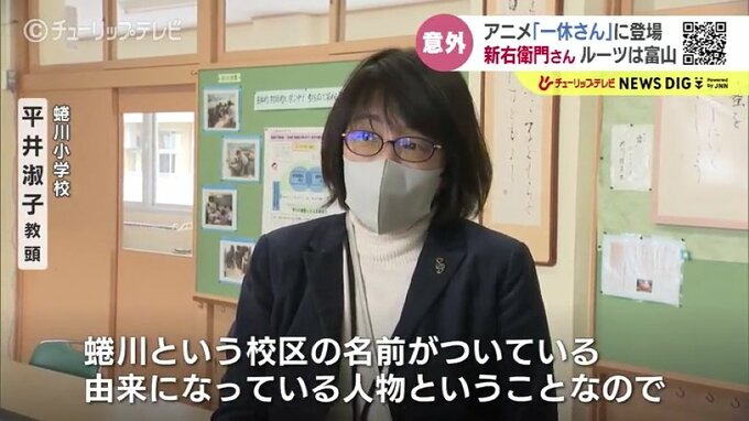 蜷川小学校では卒業生が制作した史料や絵本、総合学習の時間に地元ボランティアの読み聞かせなど、さまざまな場面で新右衛門さんについて学んでいるそうです。
