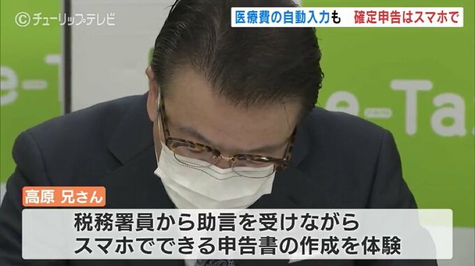 これは、自宅でできるeーTaxの利便性をPRするとともに感染症対策にもつなげようと富山税務署が毎年行っているものです。10日は富山市在住のミュージシャン、高原兄さんが税務署員からアドバイスを受けながらスマホで申告書を作成しました。