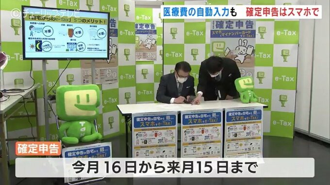 去年、確定申告にeーTaxを利用した人は全国で442万人と前の年の1・4倍に増え、確定申告会場を利用した人の数を初めて上回りました。所得税などの確定申告は2月16日から3月15日までです。