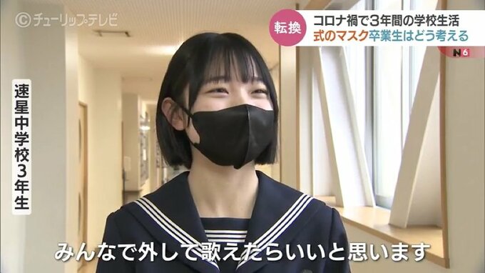 女子生徒:「せっかくの中学校生活最後の卒業式なので、みんなの顔を見ながら卒業できたら楽しいなと思います。あんまりそういうイベントでみんなで揃って歌うっていうことがなかったので、外して歌えたらいいなと思います」
