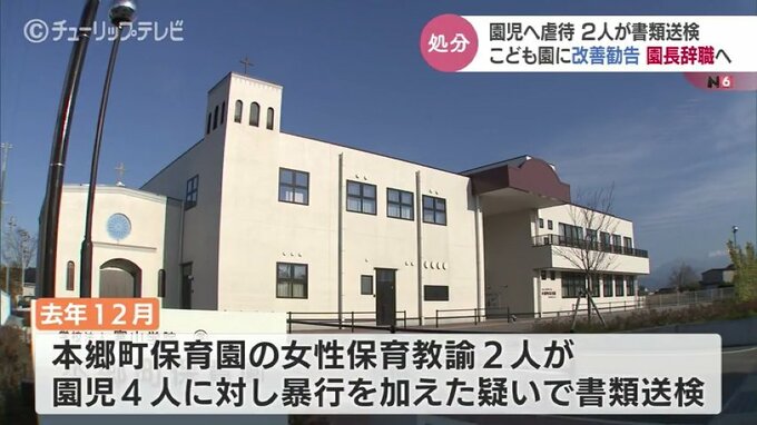 この事件は去年12月、富山市の認定子ども園・本郷町保育園で勤務していた20代の女性保育教諭2人が、1歳から2歳の園児4人に対し、暴行を加えた疑いで書類送検されたものです。