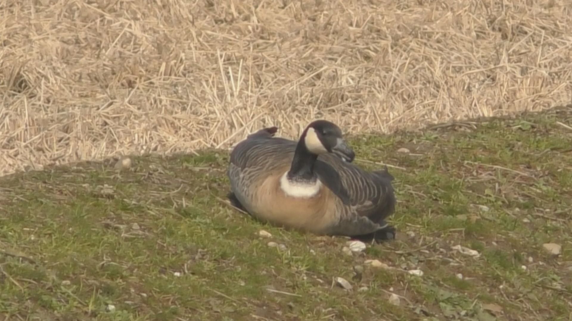 富山ではめったにお目にかかれない「シジュウカラガン」の撮影に成功した澤江さんは「出会えて超ラッキー。お餅のようにペタリと座って草を食べている姿がかわいかった」と感激していました。
