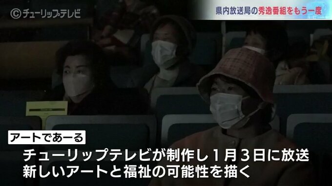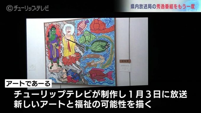 チューリップテレビからは富山県内の障害のある芸術家それぞれの人柄や制作の様子、その魅力を発見して社会に届ける人たちの姿から新しいアートと福祉の可能性を描いた番組『アートであーる』が出品されました。