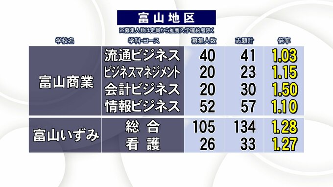 富山県 公立高校入試 2023年志願倍率 平均志願倍率は1.02倍 最高は富山中部探究科学科2.28倍