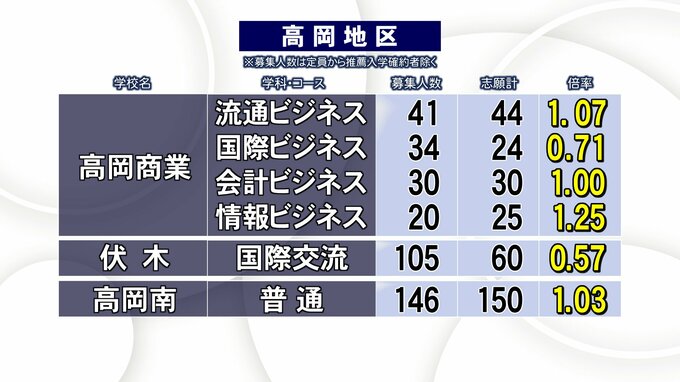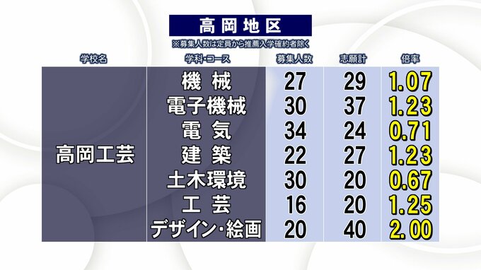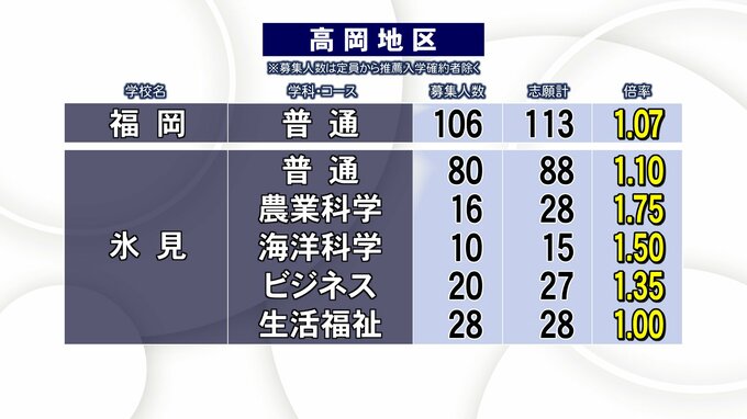 富山県 公立高校入試 2023年志願倍率 平均志願倍率は1.02倍 最高は富山中部探究科学科2.28倍