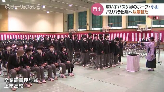 富山県内の県立高校の多くで1日、卒業式が行われました。このうち県立上市高校では車いすバスケットボール界のホープ、小山大斗(こやま・だいと)選手が門出の日を迎え、パリパラリンピックへの決意を新たにしました。